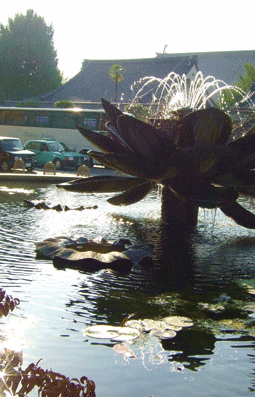 不管東本願寺被大火焚燒過幾回,門前那座蓮花池永遠噴灑至福的甘露,逆著光,不斷不斷地湧出。