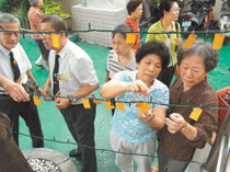 從漢神百貨剛下班的莊小姐,在掛好祈願卡後,開心地說:「這個社會,就是需如此,互相關懷、彼此祝福;自己雖不是佛教徒,但這個活動,真令人感到安慰。」