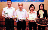 休閒產業展示會昨天舉行記者會,參加者有:台北市中小企業輔導服務中心執行長胡文琦(由左至右)、台北市政府產業發展局副局長林萬發、人間福報總編輯呂幼綸、中國生產力設計事業群專案經理胡錦玲。記者李祖翔攝