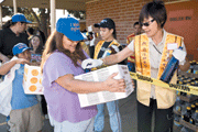 洛杉磯佛光會員將佛光人的信心、歡喜與希望布施給人。人間社記者張志誠攝