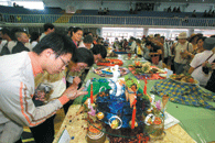 【人間社記者覺亞大樹報導】這次高雄縣素食烹飪大賽中,有一群來自國際的素食愛好者,志在參賽,不在獎金,因此主辦單位特別規畫「結緣組」,以供他們大顯身手。比賽結果,韓國弘法寺的選手,以石鍋拌飯、人蔘養生沙拉、五味茶、五色糕拔得頭籌,奪得金牌獎,佛光山叢林學院女眾學部贏得銀牌。