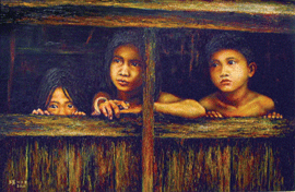 男孩就這樣站著,單薄的身子幾乎就要隨著秋風飄起來一樣,他傻了,手裡握緊小魚網,網子裡有幾條小魚,那些小魚就像他一樣想跳進河裡,自由自在地游來游去。