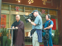 Discovery「世界最佳美食」及Food Network HD拍攝小組在佛光山拍攝佛門過堂儀軌過程。人間社記者趙莒玲攝
