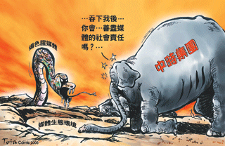 同理,壹傳媒若成為獨霸的新聞怪獸,且不論黎智英的其他企業,光是這頭「煽色腥」的「媒體巨獸」,必讓婦女、家長團體更憂心社會風氣,憂心孩子的成長環境。何況,如果蘋果日報結合電視台?