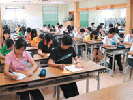 青少年參加佛學會考,認真檢測自己對佛法的認識。人間社記者趙守信攝