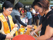 水上分會督導翁金滿則教導大家做手工香皂,省錢、環保又好用。活動結束前,嘉義市區的素食店家,明緣素食、素芳齋、菜香耕有機廚房、巴甜咖啡素食、廣記素食等,分別提供素食料理給社區居民享用,大家驚訝素食竟然會如此好吃,紛紛索取佛光會的「吃素卡」,記錄、奉行多吃一餐素食,除了節能減碳,也為自己減輕腸胃負擔,為健康多加一分保障。