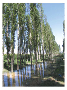 午後,路邊終於出現了綠蔭。挺拔強悍的白楊木,整齊地羅列在公路兩旁,默默地守護著當地居民向天爭來的綠洲。