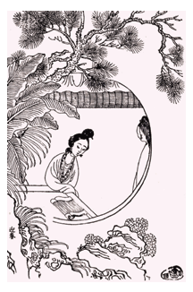 看改琦所繪,只見一位埋首書卷的女子,再度成為家父長制下代罪的羔羊,能不令人扼腕?