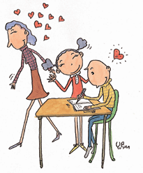 大約過了半小時,翰翰紅著眼睛、喘著粗氣回到書桌前面了。他惡狠狠的瞪著躺在桌上的教材,一副恨不得撕爛這些教材的模樣。