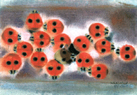 《藝術家的故事》劉其偉 小樺 |2008.11.27 語音朗讀 3550觀看次 字級 大 中 小 作品名稱:瓢蟲的婚禮/藝術家:劉其偉/創作時間:1970-80年/運用媒材:水彩/作品大小:不詳自小即嚮往海洋探險的劉其偉,一生中遇到許多不順遂的事情,對他來說,後半生選擇了繪畫,也是一種冒險。六十歲時的劉其偉,生命的熱力依然衝貫,是他創作的高峰。慈眉的他被稱作「劉老」,他的畫正如其人,謙虛而無霸氣,充滿了對人的愛心。這幅作品內容是由十七隻瓢蟲所構成。瓢蟲的英文名字叫「淑女蟲」,可能是因為瓢蟲揚翅飛行的模樣輕緩悠哉,彷彿撐著小洋傘散步的名媛淑女。十七隻瓢蟲一起參加一場婚禮盛宴,鮮紅的色彩是牠們美麗的彩妝,而聚散有致的構圖,更像是大家一同快樂舞蹈,或是播放結婚進行曲時,天真浪漫的音符。小小藝廊──瓢蟲●材料:水彩、墨汁瓢蟲的模樣真的好可愛喔!一群瓢蟲聚在一起,你覺得牠們在做什麼呢?1.以紅色的水彩畫出一隻隻瓢蟲,有的大、有的小,有些聚在一起,有的離開一些。2.接著,用墨汁畫出背景的氛圍,外圍深色一些,中心保持白色就好囉!3.完成後,選擇一個顏色輕輕染在背景部分。4.用筆和墨汁將瓢蟲可愛的點點加上去,記得要對稱喔!5.最後加上瓢蟲細細的腳,作品就完成囉!小朋友作品:費筠舫(福星國小一年二班)陳胤叡(幸安國小二年十班)張洧承(福星國小二年四班) 前一篇文章 《令人懷念童年》朋友之歌 下一篇文章 《登山專家》我的級任導師 熱門新聞 01【詩】草螟公2025.12.1802【閃文集】火星暗斑之謎2025.12.1603如何優雅不濺水花?2025.12.1604福建艦航經台海 空拍照首曝光2025.12.1805高雄新航線明啟動 佛光山成亮點2025.12.1706與精品品牌撞鞋 印度涼鞋打專利戰2025.12.2107寶塔寺 三代同堂搓湯圓、繪燈籠2025.12.1608受星雲大師啟發 旅日名廚獲頒黃綬褒章2025.12.1609資助流浪漢之家 里斯本佛光人跨文化送暖2025.12.1810社論--改變與改變的能力2025.12.16 訂閱電子報 台北市 天氣預報 台灣一週天氣預報 相關報導 【快樂塗鴉簿】去鄉村騎單車 【寶島覽勝】 后里馬場【快樂塗鴉簿】享受美好時光【小藝術家】我的夢想家園【天南地北聊音樂】冬日裡的雪之舞蹈【快樂塗鴉簿】去郵局寄信