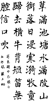《小小書法家》 羅玉姍 朱逸凡 |2008.12.03 語音朗讀 470觀看次 字級 大 中 小 羅玉姍(屏東縣中正國小五年六班)朱逸凡(台北市光復國小五年十八班) 前一篇文章 《小小詩人》刷馬桶 下一篇文章 《愛的書信》陪妳讀書 熱門新聞 01與精品品牌撞鞋 印度涼鞋打專利戰2025.12.2102銀杏點亮.東京印象2025.12.2303邂逅佛教 安頓身心2025.12.2104【動物奧斯卡獎】猜猜誰最會演(上)2025.12.2105北捷英雄捨身救人 母盼菩薩接引2025.12.2306【守護家人】 為愛築家2025.12.2307社論--瞋恨的危害2025.12.2108【佛教管理學②】人間佛教的「治心十法」⑩2025.12.2109數位科技與信仰交會 推播人間佛教文化2025.12.2210有緣一世就是福2025.12.21 訂閱電子報 台北市 天氣預報 台灣一週天氣預報 相關報導 【快樂塗鴉簿】美麗的外師賈西亞 【快樂塗鴉簿】快樂動物園 【童詩.童思】 動物園【快樂塗鴉簿】熱氣球嘉年華【原民說故事】永遠的山風(上)【快樂塗鴉簿】公園的貓