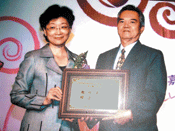 【人間社記者白雲飛金門報導】長期致力於更生保護工作的佛光會金門協會督導楊清國,獲得法務部九十七年更生保護事業有功人士,上月接受表揚,同時晉見總統馬英九,書寫對聯「不獨不統創雙贏,有為有守造新局」致贈。