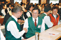 二○○八年全國義工聯合講習會-心靈成長暨授證典禮,來!先學習如何正確又親切的與人握手吧!人間社記者江峰平攝