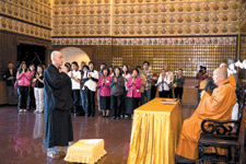當天有佛光山寺住持心培和尚、國際佛光會世界總會秘書長慈容法師、西來大學董事會執行董事依空法師、西來寺住持慧濟法師及信眾百餘人觀禮、祝賀。