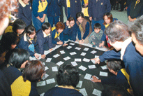 幹部講習會,透過遊戲讓佛光會員們了解集體創作。人間社記者江峰平攝
