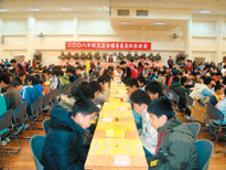 【人間社記者胡素華三峽報導】由國際佛光會中華總會主辦,台北城中等七個扶輪社協辦、中華民國象棋文化協會承辦的「二○○八年佛光盃全國菁英象棋錦標賽」,十四日在三峽金光明寺舉行。六百多人參賽,一千四百多名家長觀賽,場面盛大,比賽、觀賽人數創八年來新高。