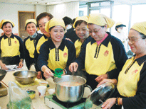 比賽隊伍由抽籤決定位次,主辦單位喊「比賽開始」,大家拿起鍋碗瓢盆,叮叮噹噹各顯神通。每隊主廚大展巧手,香氣四溢,令人聞之垂涎。 (人間社記者妙彬攝)
