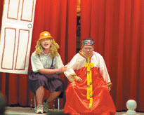 二○○八義工暨慈悲委員歲末研習會中,嘉南藥專同學以突出的人物造型演出失智者照護的主題。人間社記者林美君攝