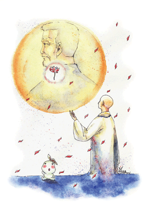 回家,再也看不到爸坐在熟悉的那張椅子上,對著我叨念著:怎麼老是瘦瘦的,要吃胖一點!爸即使到了天上正在聽經聞法,不論爸在多遠的遠方,只要一念召喚,十萬億佛土瞬間都回到我的心中。「在那地方要好好修行,好好與人和合一起。」爸,等您聞法的那一炷香燒盡,我已經與您一起坐在淨土的花園裡,吹著涼風,聽著鳥語,聞著花香……談笑生命原是水中月,一池水盡,那滿滿的月光依然不曾滅去……