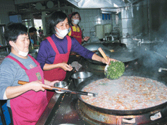 眾緣和合臘八粥 營養香積結佛緣 |2009.01.05 語音朗讀 774觀看次 字級 大 中 小 編按:一月三日(農曆十二月八日)恭逢「佛陀成道日」,佛光山派下全球道場秉承大陸叢林將臘八粥送往信徒家中,告知佛陀成道說法度眾的悲心,從去年十二月底即在各地熱烈展開系列活動,有戲劇表演說明節日緣起,有組團至各政府機關、學校、安養院、醫院,奉上至少八種食材熬煮的濃稠臘八粥,分享佛教徒慶祝佛陀成道、緬懷佛陀的精神。(圖說:花蓮縣月光寺義工一周前即發心準備食材,他們凌晨三、四點即到廚房,不畏冷水洗菜,以大灶烹煮出一鍋又一鍋的臘八粥。簡獻宗攝)佛陀成道紀念日 佛光山各地道場慶祝 「法寶節」 菩薩義工走到社會各角落祈福 同霑法喜戲劇表演 寓教於樂國際佛光會嘉義教師分會,去年十二月二十四日由圓福寺住持覺禹法師帶領,在大同國小演出「臘八粥之因緣」,督導鄭榮賢等人粉墨登場演出悉達多太子出城、苦行、牧羊女餵乳糜、成道等經歷,寓教於樂的表演、營養可口的臘八粥,讓該校師生不但了解臘八粥的因緣,也享受了熱騰騰的臘八粥。二十六、三十日分別在興華中學、及僑平國小、嘉義監獄兩場演出也引起熱烈的回響。(圖說:嘉義教師分會表演臘八粥之因緣話劇。人間社記者賴台生攝)(賴台生)六心煮粥 眾緣和諧鳳山講堂去年十二月二十五日邀請佛光山開山寮監寺覺具法師教授大家煮臘八粥,共有八十餘人參與。覺具法師也分享佛光山開山星雲大師指導煮臘八粥的秘訣,必須做到「眾緣和諧」、「融和食材」、「入口即化」的訣竅,並指導典座的六種心:一、道心:信仰佛教的熱忱。二、供養心:真誠奉獻的心、三、功夫心:改造自己的心。四、喜心、創造生命的喜悅。五、老心:體貼對方的心。六、大心:無差別的心。(張淑雅)(圖說:慈悲基金會義工同心協力備辦二千份臘八粥供眾結緣。人間社記者林美君攝)基隆極樂寺及佛光會基隆地區各分會,十七日舉辦「法寶節臘八粥實務講習會」,基隆區各分會有百餘人參加。過程中,會員們用心作筆記,深怕煮粥過程有所遺漏。陳彩鳳督導表示,意想不到沒有加香菇、芹菜調味的臘八粥反而更美味。今日社會,如果家庭團體,大家都能提倡食粥,不但節省宴會開支,又能過清貧淡泊的生活。(蔡文斌)台北道場臘八粥賽 台北道場去年十二月十六日舉行「臘八粥烹煮比賽」,國際佛光會中華總會各分會組成二十六隊,共一百五十人參賽。松四分會長陳淑燕說,未比賽前已試煮三次,就是希望能有最佳的表現。全部隊伍中以統一穿上白色廚衣的教師分會隊最顯眼,會長范鴻英說:「我們不僅衣服統一,連材料要切成幾公分也講究,完全符合主辦單位的要求」。最後,第一至三名由永吉二分會、金剛二分會、忠孝一分會獲得。(妙彬)新竹溫馨臘八情新竹市政府特別聯合佛光山法寶寺及新竹地區各佛光分會辦理「九十七年度法寶節溫馨臘八情」系列活動,去年十二月二十五日在新竹市政府一樓大廳舉辦記者招待會,計有二十餘家媒體善友蒞臨採訪。市長林政則不僅親臨指導,更有市議員李黃錦葉、吳青山及鄭正鈐等人現身響應,林政則指出,期待讓佛教徒慶祝佛陀成道的喜悅及臘八粥的香積美味,走入市民的生活當中。 (圖說:南屏別院佛光童軍團小狼為長者餵粥。人間社記者黃大慶攝)法寶寺今年度的法寶節活動共分為三梯次辦理,共分送郵政總局、市政府、安養院、交通大學、中華大學、元培科大、新竹女中等二十三所機關及新竹市及竹北市二十個市民集會所,合計三萬五千份的臘八粥,希望新竹市在臘八粥的美味中徹底「暖」起來。(本哲) 前一篇文章 【佛光山、佛光會】 下一篇文章 病房贈佛粥 熱門新聞 01【印象旅人】阿里山森鐵首航記2026.04.1102人口持續減少 今年新生兒恐跌破9萬 2026.04.1103螢光花泉季 卡比胖拉超療癒2026.04.1104鄭習會 鄭:兩岸和平制度化2026.04.1105【口腔健康攸關長壽】 張添皓:從齒啟動全身保健2026.04.1106【養眼專欄】 糖尿病為何讓視力忽近忽遠?2026.04.1107洗衣機新過濾系統 捕捉9成微塑膠2026.04.1108MLB太空人打敗洛磯 鄧愷威中繼成功2026.04.1609佛光大佛供奉法華塔與《法華經》信仰意涵2026.04.1210紐約曼哈頓 豆梨花盛開2026.04.11 訂閱電子報 台北市 天氣預報 台灣一週天氣預報 相關報導 緬懷星雲大師 全球佛教學者暢談人間佛教245校雲端交流 凝聚三好共識推廣生命教育 林聰明獲特殊貢獻獎西方寺瑜伽課 接引民眾結法緣元宵乞龜 390兩大金龜亮相基督城地震10年 佛光山領眾祈願