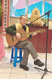 其中,佼佼者當數游國泰,他以自創的曲子,自彈自唱將《八大人覺經》要義,在短短數分鐘勾勒出來,此別出心裁發表方式,獲得滿堂喝采。