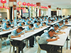 【人間社記者丁仍雁馬口報導】馬口禪凈中心三日,為慶祝法寶節,除贈送一千五百份臘八粥給媒體、學校、友寺、信徒,當晚還舉辦二○○九「生耕致富」慶法寶節抄經活動,其中,有一百零五位國民服務生(編按:在當地凡高中畢業男生都需服務三個月,相當於國內的服兵役制度)抄寫《佛光菜根譚》完畢後,歡喜攜帶《佛光菜根譚》回去,他們表示可以時時自我惕勵。