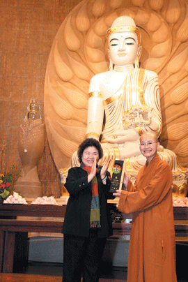 市長陳菊當場頒發感謝狀給佛光山南屏別院,感謝佛光人為高雄市民的努力與付出,由住持滿益法師代表接受。