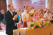 信仰基督教的男女方主婚人,在婚禮上致詞表示,感動佛光山道場為其子女舉辦這樣一場莊嚴的佛化婚禮,從悅耳的梵音中感受佛教的融和與攝受,這是他們首次參與及見證佛教儀式。