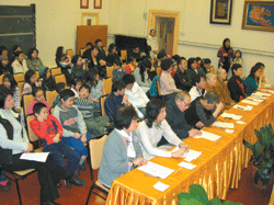 近百人參加英國曼城佛光中文學校二○○九年朗讀暨說故事比賽活動,圖為與會家長、學生觀摩其他參賽者的表現情景。人間社記者唐瑞芬攝