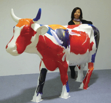 跟著內在音樂的節奏,邊舞邊畫,讓紅色、紫色、橙色、藍色、白色,快樂揮灑點線面塊,在牛身上自在布局。「留白」與「即興舞繪」共同造就了這一頭令人愉悅的「快樂即興牛」。