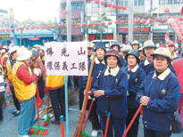 社大老師徐秀真帶領大明寺佛光會員,負責清掃長春街、莊敬街區域,賣力工作的表現,頗獲民眾的肯定。