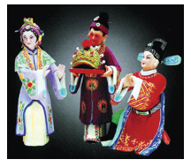 三個人物的構圖,右側為中狀元的王玉林 ,半跪拱手作賠罪狀:中間是王母、雙手捧紅漆盤,上置鳳冠;左為秀英、側身向外,雙手作推托狀。人物開相均清秀,而眼神傳遞情緒卻有不同:玉林揚眉、注目於秀英,眼神端正公開,有真情,有實意;王母略頷首,眼光自下而上,是細心觀察秀英心理變化的關切眼神;秀英則雙眼視前下,眼無神采,其複雜心理可想而知。