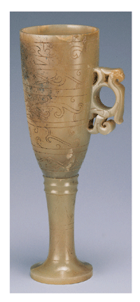 除此之外,漢代還製作了許多圓雕動物玉飾與玉質器皿,那些動物玉飾以玉鳥、辟邪及玉人最多見,有的寧靜優雅,有的勇猛生動,姿態各異其趣。而玉質器皿則有羽觴杯、高足杯、角杯、玉盒、玉卮等品類,表面往往雕琢了變化性的規律紋樣與浮雕動物紋飾,精雕細琢的工法和出人意表的紋飾布局,讓漢代玉器展現精緻華麗的美感。