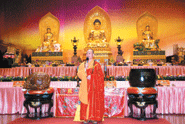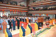 昨日彰化福山寺舉行「佛像安座灑淨典禮」,禮請佛光山宗長心培和尚主法,國際佛光會中華總會總會長心定和尚母親石沈碖、木雕藝術家黃媽慶及正在福山寺參加「二○○九年第二十一期全國教師生命教育禪修研習營」近二百位各級學校校長、教師,加上各地信眾計千人與會,場面隆重莊嚴。文化局長林田富呼籲,大家常常回到福山寺,相信人生都會更美好。人間社記者江峰平攝