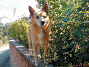 有時候走到一半,我轉身回頭看看,就會看到一顆「大頭」掛在圍牆上,仔細一看原來是胖胖。在家裡的十八相送不夠,還要爬到圍牆上看我,這時我也會向牠打打招呼,讓牠知道我就在外面而已,很快就會回來的。至於Puppy,因為太小隻,只能爬到比較矮的圍牆上,站在上面等我回家,兩隻狗每天定時在圍牆邊的凝視與守候,讓我覺得好窩心,真是沒白疼牠們啊!
