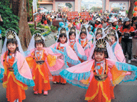 扮蛤蜊觀音 邀您同護生 圖與文/人間社記者黃俊雄 |2009.02.10 語音朗讀 551觀看次 字級 大 中 小 佛光山春節平安燈會多彩多姿的活動,吸引無數人觀賞,其中各具「主題」的化裝遊行,服飾、舞姿都具有高水準,表演的動作曼妙優雅,兼具教化意涵,最能博得上山民眾的掌聲。 來自台南新營小天星幼稚園小朋友,在老師、家長帶領下,裝扮成「蛤蜊觀音」與可愛的魚兒、水草,藉著鮮豔的服飾道具,呈現「蛤蜊觀音」典故,同時宣導「素食護生」主題。隊伍後方還有威儀莊嚴的新營講堂師姐掌旗軍,與遊客分享星雲大師的墨寶,也將智慧法喜帶回家。圖與文/人間社記者黃俊雄 前一篇文章 佛光山元宵夜 煙火璀璨 交響樂震撼 下一篇文章 美學社福學苑學員 願做謙虛的一等生 熱門新聞 01佛光山月光寺啟用 花蓮心靈新地標2026.03.2902推動科學辦案 鑑識權威李昌鈺87歲辭世2026.03.2903道奇頒冠軍戒 大谷喊要更多枚2026.03.2904中職開幕戰 猿隊險勝兄弟2026.03.2905川普誇耀政績 陸採購大豆倍增2026.03.2906最大規模無王日 逾3200場反川示威2026.03.3007汽油飆漲 1.7 元 創 11 年半新高2026.03.2908宜蘭綠博會 探索真理2026.03.3009陸首都維安 北京全面管制無人機2026.03.3010MLB 鄧愷威轉隊太空人 初登板奪首勝2026.03.30 訂閱電子報 台北市 天氣預報 台灣一週天氣預報 相關報導 緬懷星雲大師 全球佛教學者暢談人間佛教245校雲端交流 凝聚三好共識推廣生命教育 林聰明獲特殊貢獻獎西方寺瑜伽課 接引民眾結法緣元宵乞龜 390兩大金龜亮相基督城地震10年 佛光山領眾祈願