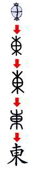 表層:古字用太陽從樹木中升起的方向,來表示東方。例如:東邊。