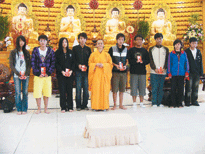 【人間社記者李錦環屏東報導】開學日前夕,佛光山屏東講堂住持妙璋法師昨天及時頒發「人間有愛」獎助學金,給屏北高中藍正成等六十六名清寒、單親家庭學子每人六千元,同時贈星雲大師「給人接受、與人為善、待人慈悲、為人正派」四句語,期勉學生做頂天立地、抬頭挺胸、乖巧,讓父母安心的好孩子,更要有一份感恩心,畢業服務社會要懂得回饋。