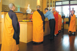 屏東監獄鼎新學苑佛堂十日灑淨,由修持中心主任慧昭法師主法,周境墻典獄長(中)代表上香。人間社記者許國光攝