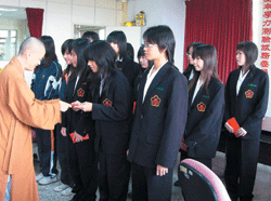 屏東講堂住持妙璋法師頒贈「人間有愛」獎助學金給屏女十三名學生。人間社記者李錦環攝