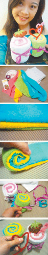 1.可依自己喜歡口味挑選小毛巾顏色,例如喜歡草莓就選粉紅色,巧克力就可以選咖啡色。