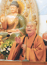 大師說,若念佛僅為了往生西方極樂世界,就不是真實,「阿彌陀佛」其實與我們息息相關,每一尊神佛都是因應人的需要所創,但信仰一定要正派,因為神佛其實就是自己。