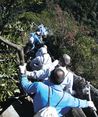 爬鳶嘴山,只能往前不能往後,只能繼續前進而不能停滯,只能走在稜線否則會落入兩