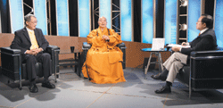 【人間社記者鄧淑明台北報導】佛光山開山星雲大師與監察院長王建煊,一日應天下文化邀約參加「藍海年代」節目錄影,談「如何面對困境,開創嶄新明天」,藉此鼓舞社會大眾、企業界,給予信心和希望。