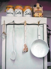 4.最後將炒菜鍋具用白色顏料全部塗好,上漆即全部完成!