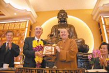 吳伯雄進一步指出,全世界面臨金融海嘯,唯有宗教能安定民心,他希望大家以正念、慈悲心幫助貧困的人度過難關,讓世界更美好。