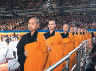 屏東禪淨密三修 萬人為世界祈福 人間社記者李錦環 |2009.03.09 語音朗讀 2294觀看次 字級 大 中 小 第二場南區盛會 曹縣長、曾永權等貴賓 祝禱福慧增長 心定和尚開示 共修有助紓解壓力【人間社記者李錦環屏東報導】由佛光山主辦、國際佛光會中華總會承辦的「二○○九年禪淨密三修法會」第二場,昨日在屏東縣立體育館登場,中午十二時不到,就有來自高雄、屏東、台南、台東等縣市民眾近萬人歡喜共結法緣,有九十二歲高齡的老奶奶步履平穩登上台階,也有襁褓中的小娃娃安祥感受佛法。 (人間社記者莊美昭攝)金融衝擊 考驗修行與智慧參加盛會的貴賓如雲,包括屏東縣長曹啟鴻、副縣長鍾佳濱、立法院副院長曾永權、立委王進士與黃昭順、屏東市葉壽山、省政府秘書長鄭培富、國民黨屏東縣黨部主委楊元勛、中國童子軍總幹事林龍清、屏東縣議員林亞蒓、李世斌、屏東縣記者公會理事長梁秀瓊、中油煉油廠高雄廠長陳水波、副廠長李順欽與國際佛光會中華總會副總會長陳順章、南區協會長黃明侃、副會長楊政達等,一同感受萬人共修的法喜與殊勝莊嚴。 屏東縣長曹啟鴻表示,他一入會場就感受到一股祥和、歡樂的氛圍,感謝佛光山在屏東舉辦充滿祥和、平安的大活動,讓大家福慧增長。 (人間社記者莊美昭攝)立法院副院長曾永權說在金融衝擊影響下,此時此刻正是考驗修行、智慧與能力的關鍵時刻,佛光山此時刻舉行「第二屆世界佛教論壇」,搭起和平的、文化的橋梁,強化共同信仰,愛與慈悲普照大地,兩岸法水長流。 法會莊嚴 空飄金菩提葉莊嚴的法會在咚咚震撼的擊法鼓聲中揭開序幕,國際佛光會中華總會總會長心定和尚偕慧昭法師、慧道法師薰壇灑淨,誦持大悲咒、請聖、念佛、祈願祝禱、拜願,當會場上空飄下一片片各種色彩、金光閃爍的菩提葉,全場驚喜、讚歎聲連連。 內修功夫 開發體智能金融海嘯與全球經濟大衰退,百業蕭條,人民痛苦指數加深,心定和尚開示,國際佛光會舉辦「禪淨密三修法會」,希望大眾藉由「禪」的內修功夫,開發身心深處的智能與體能;「淨」土念佛法門,不受時空、根器、職業的限制,適合人間佛教行者的修持;再加上持咒來修「密」,融合三種修持方法,匯集眾人的願心,凝聚清淨力量,達到淨化自我身心之境界,並將此功德回向一切眾生,身心自在,眾緣和諧。心定和尚指出,在人心惶惶之際,更應透過參禪、念佛、修行,提昇自我,淨化社會,紓解心理壓力。(翁禎霞攝)心定和尚並以戚繼光將軍虔誠讚誦《金剛經》讓部屬轉世投胎,以及在美國發生一場連環車禍,虔誠佛教徒恭敬祈求諸佛菩薩加被平安回來等故事,勉大家要虔誠祈福,不論任何宗教,只要有一顆虔誠恭敬的心祈願,所求都能夠順心如願。 不景氣 更要發揮菩薩精神法會現場,點燃近萬盞燭光心燈時,好似點亮了光明與希望,與會大眾臉上都洋溢著法喜、祥和、歡樂。心定和尚也期願大眾在景氣不好的時候,更要開心、樂善好施,發揮菩薩與義工精神,讓自己天天快樂、天天健康、天天發財、天天平安、天天幸福。一番話令會場響起如雷掌聲與讚歎。 前一篇文章 【佛光橋】 下一篇文章 以「合掌」成就善緣 慈惠法師樂度「人生」 熱門新聞 01佛光山大雄寶殿 逾千僧信迎萬佛2026.02.0102【紀實攝影】花蓮月光寺 台灣後山的人間淨土2026.02.0103【遨遊藝事】巴黎 黛瑪兄弟茶館(Dammann Frères)2026.02.0604【人間行者心】一鏟一撬,心路通行2026.02.0105【書頁微光】《把牠找回來》 流浪少年變身寵物偵探2026.02.0106沙漠獅變海洋獅 為人類上了一課2026.02.0107土方之亂推高成本 房價漲壓浮現2026.02.0208【修行在人間】佛心的慈視92026.02.0109【心靈財富】慈悲包容是幸福安樂2026.02.0110向前有路 光明在望2026.02.05 訂閱電子報 台北市 天氣預報 台灣一週天氣預報 相關報導 緬懷星雲大師 全球佛教學者暢談人間佛教245校雲端交流 凝聚三好共識推廣生命教育 林聰明獲特殊貢獻獎西方寺瑜伽課 接引民眾結法緣元宵乞龜 390兩大金龜亮相基督城地震10年 佛光山領眾祈願
