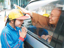 妹妹妳福報很大喔,定和尚親自加持呢!接著,定和尚與她握手,相約下次再會的善緣。
