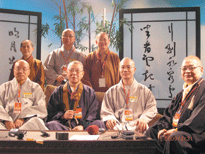 日本日蓮宗貫守(大住持)持田日勇(左前二)、一乘院住持內山堯邦(右一),以及韓國東國大學教授法山法師(左前一)、韓國太古宗開放(中譯)禪院院長無相法顯法師(左前三),昨天在佛光山台北道場發表分論壇論文後,特地請翻譯人員滿潤、依恩法師帶領參觀人間衛視。