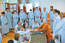 監院覺寧法師為學員解說佛門行儀、認識禪堂各項號令與規矩,叮嚀學員在每個過程中要保持愉快心情,照顧自己的內心世界。 (人間社記者陳昭良攝)